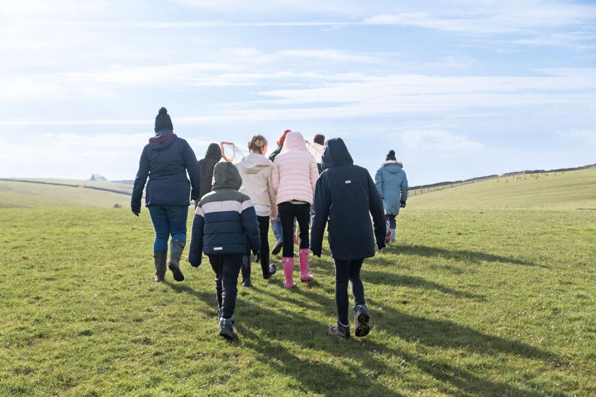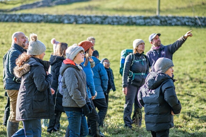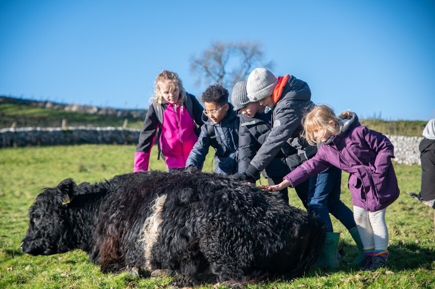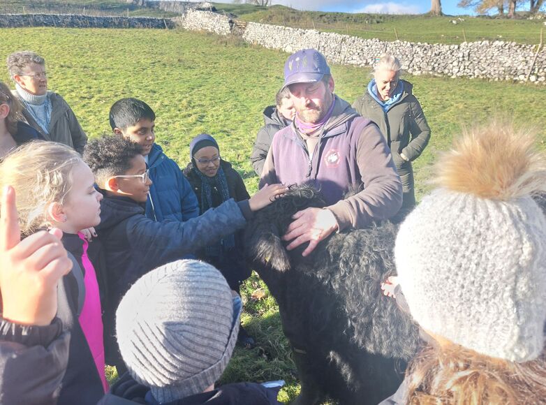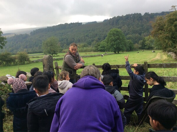 Farmer Richard took students for a walk through fields by the river, explaining how farming and nature co-exist. They visited one of his many stone barns with barn owl boxes, then looked for and identified other dales bird life.